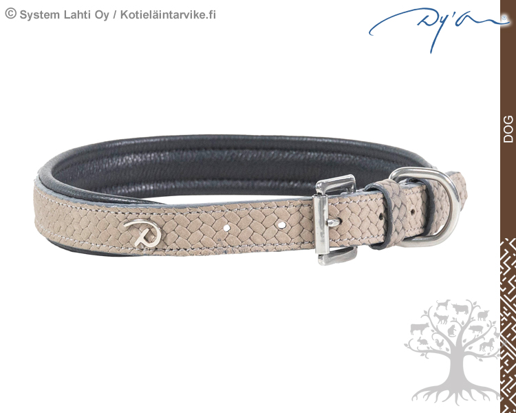 Dyon Dog Nahkapanta Basket Grey. Dyonin erittäin korkealaatuinen, pehmeä ja todella tyylikäs koirien nubuck -nahkainen kaulapanta, jossa on kaunis Basket -printtinahka ja kestävät terässoljet. Dyon Dog Collection nahkapanta on valmistettu erittäin hienosta ja pehmeästä Dy’on -nahasta.