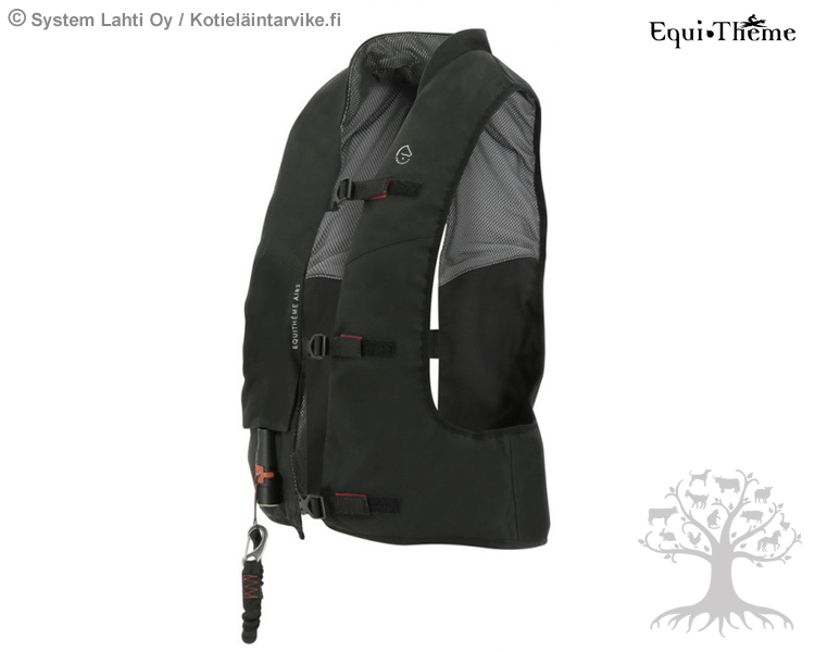 Equi-Theme Turvaliivi Air2 Freejump. Erittäin laadukas, kevyt ja hengittävä ilmatäytteinen turvaliivi / paukkuliivi aikuisille ja lapsille. Paukkuliivi puetaan aina vaatteiden päälle, koska ilmatyynyt täyttyvät ulospäin. Ratsastaja kiinnittää turvaliivin laukaisuhihnan satulan etukaaren D-lenkkiin tai kiinnityshihnaan. Putoamisen yhteydessä turvaliivin kiinnityshihna kiristyy ja laukaisee patruunan täyttäen turvaliivin ilmatyynyt jopa 0.1 sekunnissa. Liivin ’key-ball’ -tekniikkaa laukaisee turvaliivin "ilmatyynyt" riippumatta siitä mihin suuntaan ratsastaja putoaa. Turvaliiviin patruuna on helppo ja nopea vaihtaa uuteen. Turvaliivin käyttö lisää huomattavasti ratsastajan turvallisuutta.
