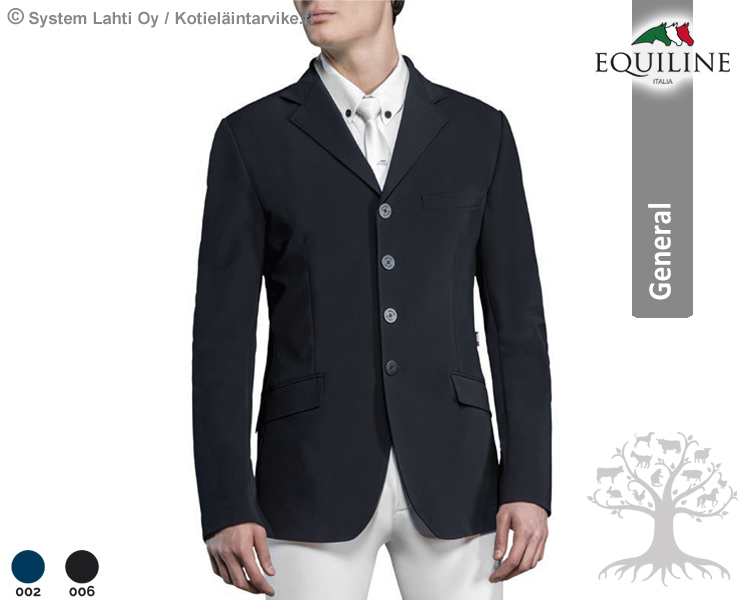 Kisatakki on valmistettu erittäin korkealaatuisesta, "ryhdikkäästä", 4-suuntaan joustavasta, erittäin hengittävästä, vettä ja likaa hylkivästä, nopeasti kuivuvasta ja teknisestä X-Cool Evo -kankaasta, joka antaa erinomaisen liikkumavapauden. Takissa on läpälliset etutaskut, erittäin kaunis leikkaus ja sileät (takinsävyiset) Equiline -logolliset hihansuu- ja etunapit. Erittäin mukavantuntuinen, istuva ja edustava kisatakki, joka suunniteltu ja valmistettu Italiassa. Sisältää kisatakin säilytyspussin. Suosittelemme!