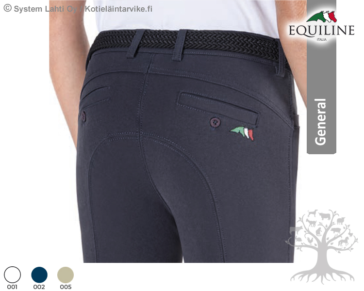 Equiline General Poikien Ratsastushousut Knee Grip Jhoank. Equilinen huippulaadukkaat, erittäin tyylikkäät ja polvigrip -paikkaiset poikien ratsastushousut, jotka on huippuunsa suunniteltu ja valmistettu urheiluvaate. Ratsastushousujen tekniset ominaisuudet tulevat esiin erityisesti housun leikkauksissa, muodoissa, materiaaleissa ja ennen kaikkea korkeassa laadussa. Housut on valmistettu erittäin laadukkaasta ja hyvin tukea antavasta housukankaasta, joka takaa ratsastushousuille erinomaisen kestävyyden, hengittävyyden, joustavuuden ja käyttömukavuuden.