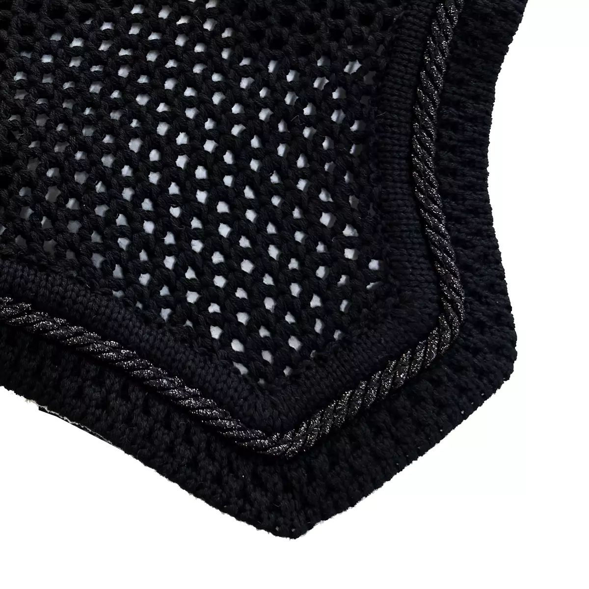 Ääntäeristävät "korvaosat" on valmistettu kolmesta eri kerroksesta: sisä- ja ulkopinnat on puuvillaa ja niiden välinen sisäkerros ääntäeristävää teknistä materiaalia. Erittäin korkealaatuinen korvahuppu, joka suojaa hyönteisiltä ja eristää erittäin tehokkaasti melua ja ääniä, joten se auttaa hevosta keskittymään paremmin itse kilpailusuoritukseen ja tehtäviin. Korvahupun korvaosat on erittäin pehmeää ja joustavaa kangasta, vasemman puoleisessa korvaosassa on brodeerattu Equiline -logo.