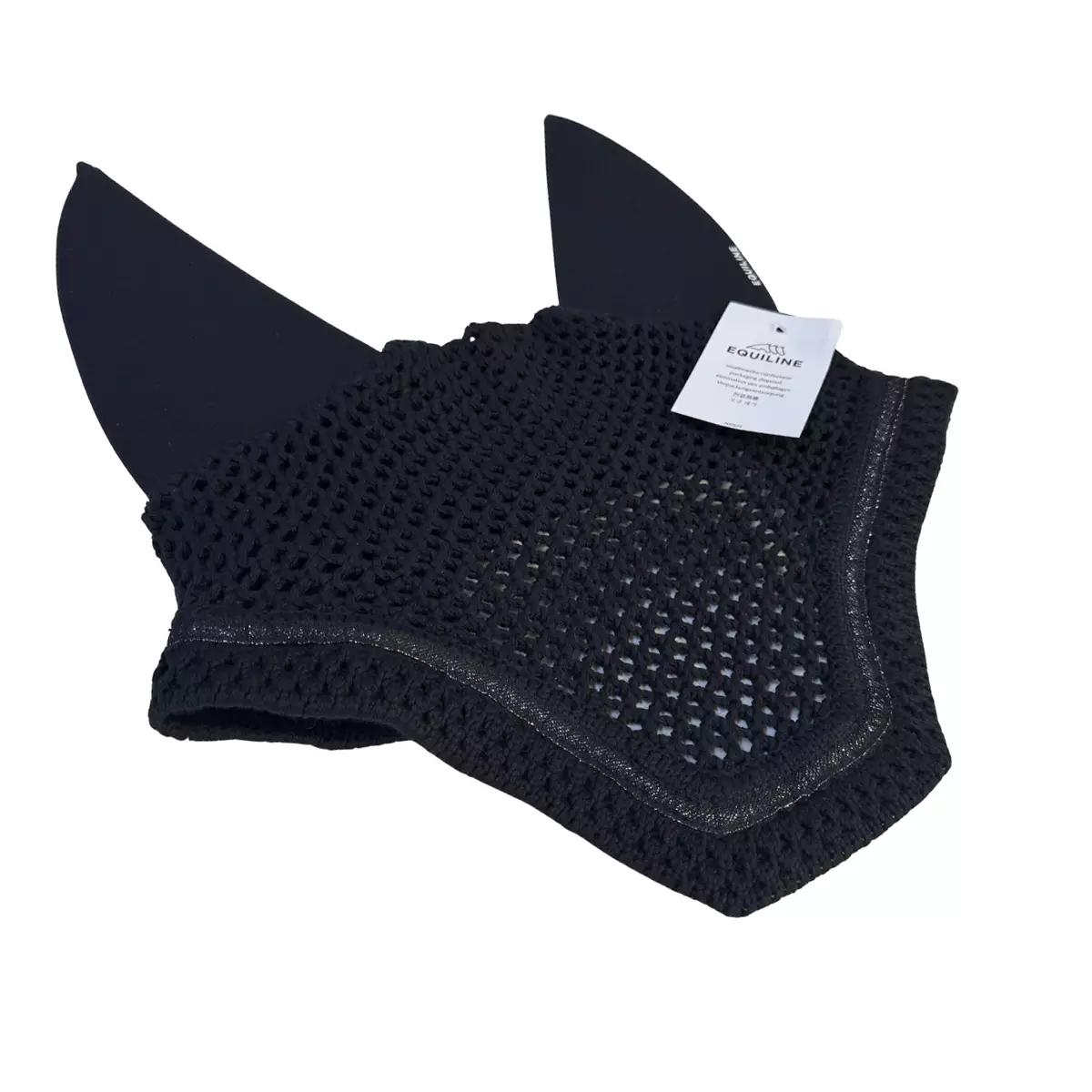 Ääntäeristävät "korvaosat" on valmistettu kolmesta eri kerroksesta: sisä- ja ulkopinnat on puuvillaa ja niiden välinen sisäkerros ääntäeristävää teknistä materiaalia. Erittäin korkealaatuinen korvahuppu, joka suojaa hyönteisiltä ja eristää erittäin tehokkaasti melua ja ääniä, joten se auttaa hevosta keskittymään paremmin itse kilpailusuoritukseen ja tehtäviin. Korvahupun korvaosat on erittäin pehmeää ja joustavaa kangasta, vasemman puoleisessa korvaosassa on brodeerattu Equiline -logo.