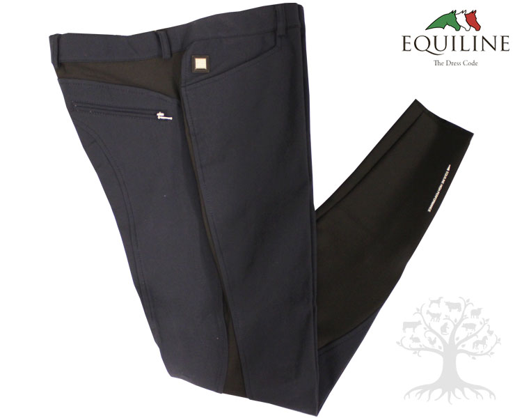 Equiline Limited Miesten Ratsastushousut Schoeller Knee Grip Cedric. Equilinen huippulaadukkaat, erittäin tyylikkäät ja polvigrip -paikkaiset miesten ratsastushousut, jotka on huippuunsa suunniteltu ja valmistettu urheiluvaate. Ratsastushousujen tekniset ominaisuudet tulevat esiin erityisesti housun leikkauksissa, muodoissa, materiaaleissa ja ennen kaikkea korkeassa laadussa. Housut on valmistettu erittäin laadukkaasta ja hyvin tukea antavasta Schoeller Prestige -kankaasta. Ratsastushousujen Knee X-Grip -polvipaikat ovat optimaalisen pitävää (ei liian pitävää) ja laadukasta silikonia. Housuissa on tilavat etutaskut ja vetoketjulliset takataskut. Lahkeensuissa on pehmeät joustoresorit. Vyötärön korkeus on normaali.