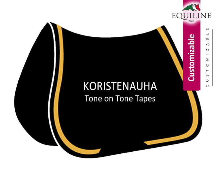 Equiline Satulahuovan Koristenauha. Equilinen Octagon, Lauren, Quadro, Exarton -satulahuopia voi tilata myös huovan reunaa kiertävällä koristenauhalla. Huom! Koristenauhan kanssa voi huopaa lisäkustomoida vain erivärisellä kanttinauhalla. Katso tarkemmin kohta Tilausohje ja tilaa yksilöllinen satulahuopasi!