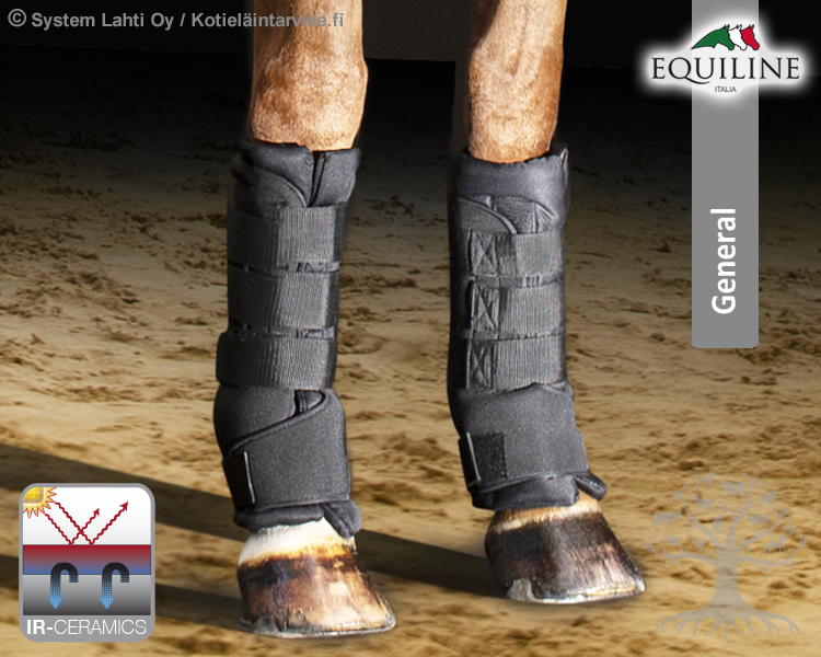 Equiline Tallisuojat IR-Ceramics Cairo. Equilinen erittäin laadukkaat ammattimaiseen käyttöön soveltuvat IR-Ceramics sisältävät terapeuttiset tallisuojat. Tallisuojissa on 2-kerrosta (toisistaan irrotettavat); sisäkerros on keramiikkaa sisältävä aluspatja ja ulkokerros helppohoitoista neopreenia. Tarrakiinnitteiset ja muotoillut tallisuojat on helppokäyttöiset ja ne pysyvät hyvin paikoillaan.