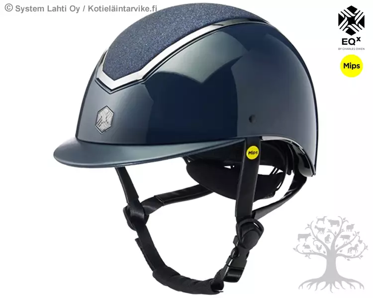 EQx by CO Ratsastuskypärä Kylo Gloss Mips. EQx by Charles Owen on uutuus kypärämallisto jonka Kylo ratsastuskypärä huokuu laatua, tyyliä ja mukavuutta. Kypärän laaja ilmanvaihtojärjestelmä takaa maksimaalisen viilennyksen sekä kypärän keveys maksimaalisen käyttö mukavuuden. Säätöruuvilla saadaan säädettyä kypärän tarkka istuvuus niin soikeaan kuin pyöreäänkin päähän.