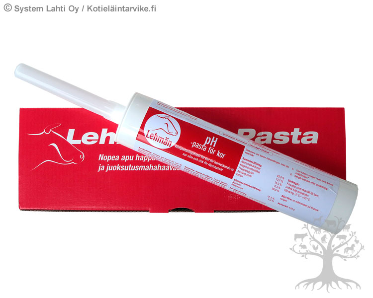 FinnCow pH-pasta lehmille, 4x430g. Täydennysrehu happaman pötsin ja juoksutusmahahaavaumariskin pienentämiseen. Annostele Lehmän pH -pastaa märehtijöille, joilla on ongelmana altistuminen happamaan pötsiin ja/tai juoksutusmahahaavaumaan. Suurin riski oireiluun on 6 viikon aikana poikimisesta eläimillä, joilla väkirehun kerta- ja vuorokausiannokset ovat suuret, tai eläimet ovat stressaantuneita olosuhteiden tai muiden seikkojen vuoksi.