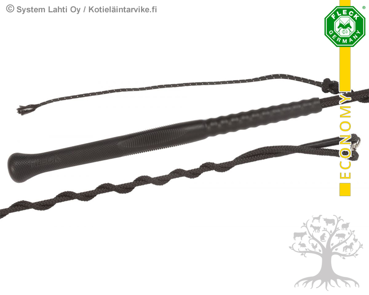 Fleck Juoksutusraippa Ergo 1-osainen. Fleck Economy -malliston erittäin laadukas 1-osainen juoksutusraippa, jossa on erityisen pitävä ja ergonomisesti muotoiltu Ergo Grip -kädensija. Nylonpintainen raippa, jonka toisessa päässä pitkä solmullinen "narusiima". Raipassa on optimaallinen joustavuus ja tasapaino. Laadukas juoksutusraippa, joka täyttää korkeimmatkin vaatimukset!