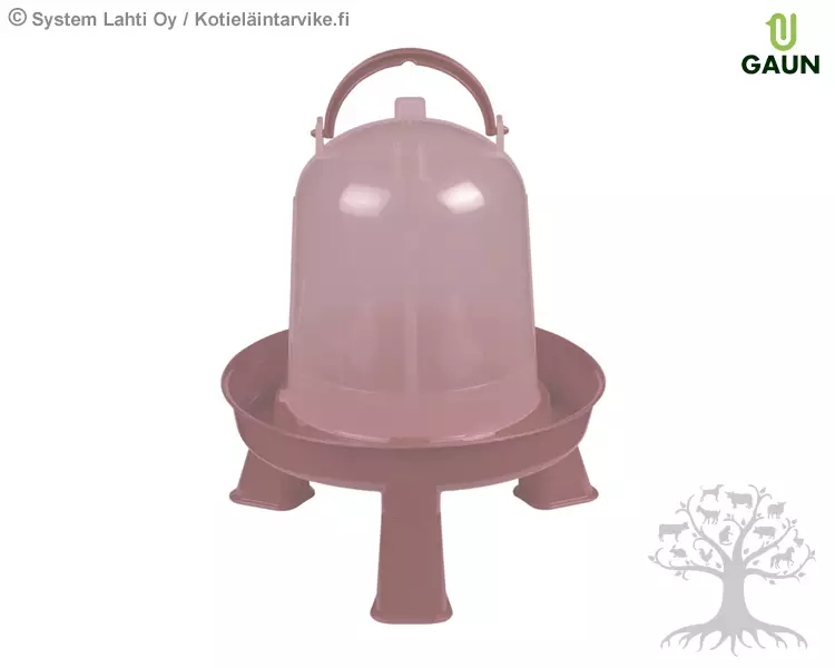 Gaun Juoma-automaatti jaloilla Rosa. Laadukas ja helppokäyttöinen juoma-automaatti siipikarjalle. Valmistettu kestävästä läpinäkyvästä muovista. Helppo tarkistaa veden määrä asteikosta. Kaikille linnuille soveltuva juoma-automaatti. Helppo puhdistaa. Juoma-automaatin vesisäiliö pysyy pystyssä täytön ajan vesisäiliön päällä olevilla jaloilla. Saatavana koot: 3L ja 5L.