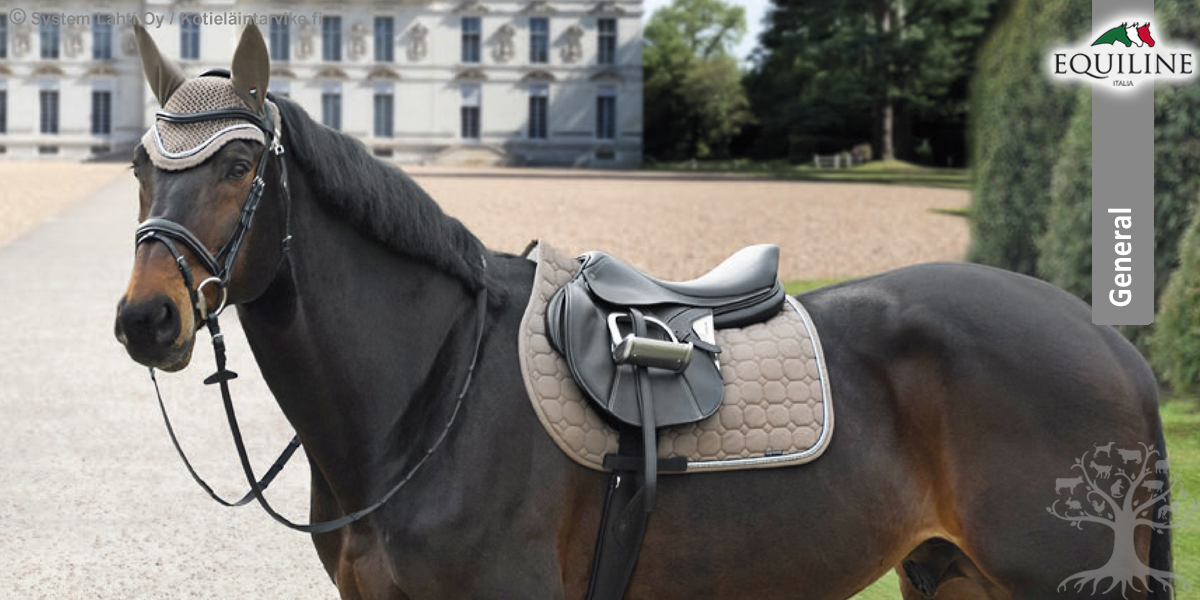 Equiline Estesatulahuopa Octagon Rusty N Black . Equilinen erittäin laadukas Octagon -satulahuopa, jonka reunoilla kiertää kauniit hopeinen sekä harmaa 3mm paksut koristenyörit. Huovan vasemmalla...