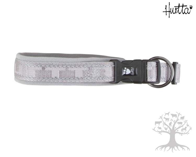 Hurtta Nailoninen Kaulapanta Casual, tuhka. Luotettava neopreenipehmustettu kaulapanta sopii päivittäiseen lenkkeilyyn ja harrastamiseen kaikille koirille. Kevyen materiaalin ja ergonomisen muotoilun ansiosta pehmustettu panta tuntuu miellyttävältä koiran kaulassa. Pistolukollisen pannan turvalukitusmekanismi ohjaa vedon aiheuttaman rasituksen pois soljesta ja tekee siten pannasta turvallisemman käytössä. Tehokkaat 3M heijastimet.