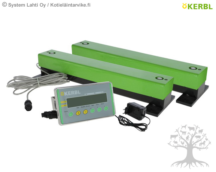 Kerbl Eläinvaaka 1500kg. Eläinvaaka näytöllä ja kahdella vaakapalkilla eläinten tarkkaan punnitsemiseen. Punnitusalue 0-1500kg. Palkit soveltuvat erilaisiin tarkoituksiin esim. käsittelyhäkin alle. Näytössä on suuri valaistu LCD-näyttö, kannatin kiinnitys varten ja 4.5m pitkä signaalikaapeli. Tukeva ja säänkestävä rakenne. Ladattava akku pistokkeetonta käyttöä varten. Voidaan käyttää myös virtalähteen kanssa. Valmistettu ruostumattomasta teräksestä ja lakatusta teräksestä. Integroidut kiinnityssilmukat mahdollistavat vaakapalkkien kiinnittämisen lattiaan ruuveilla. Vaakapalkeissa on reiät punnitusalustan kiinnittämistä varten. Vaakapalkkeja saatavana 60cm ja 100cm pituisina.