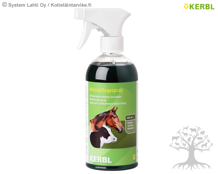 Kerbl Haavasuihke Wound Spray 500ml. Haavasuihke tukee nopeaa ja luonnollista pinta haavojen ja ihovaurioiden paranemisprosessia. Haavat kuivuvat nopeammin ja siten myös paranevat nopeammin. Haavasuihke tekee haavan pintaan suojaavan kalvon, jotta haava ei pääse aukeamaan uudelleen ja pääsee parantumaan kunnolla. Sopii hyvin myös ihottumien ja haavaumien hoitoon. Suihkuta vaurioituneelle alueelle 1-2 kertaa päivässä enintään viikon ajan. Käyttövalmis haavasuihke sopii kaikille eläimille. Sisältää minttuöljyä ja allantoiinia. Sisältää suihkesuuttimen.