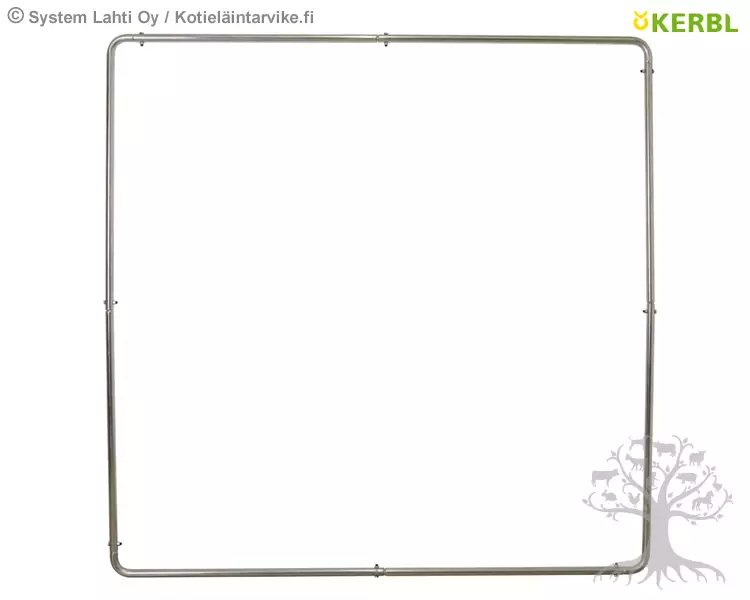 Kerbl Heinäverkon Metallikehikko Frame for Slow Feeding Net. Erittäin laadukas ja tukeva metallikehikko isolle pyöröpaali heinäverkolle. Valmistettu galvanoidusta metallista. Metallikehikko on yhteensopiva seuraavien heinäverkkojen kanssa: Kerbl Heinäverkko Pyöröpaalille Slow Feeding Net (291255, 291256, 291289). Kehikon mitat: Leveys: 1.81m, Pituus: 1.81m. Halkaisija: 27mm. Ei sisällä kuvissä esiintyvää heinäverkkoa, eikä ruokintahäkkiä.