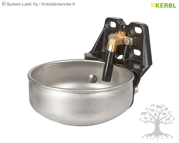 Kerbl Juomakuppi E21. Juomakuppi on ruostumatonta terästä, runko valurautaa ja putkiventtiili messinkiä. Ihanteellinen lypsylehmille, koska vedenvirtaus on korkea 20l/min (5bar). Helppo puhdistaa. Iso kuppiosa halkaisija 27 cm, korkeus 12 cm ja tilavuus 5 litraa. Putkiliitäntä ylä- tai alakautta 1/2" sisäkierteellä. Seinä- ja putkikiinnitys. Sopii naudoille ja hevosille. Saatavana erikseen juomakupin kiinnike (22365) ja varaventtiili (221861).