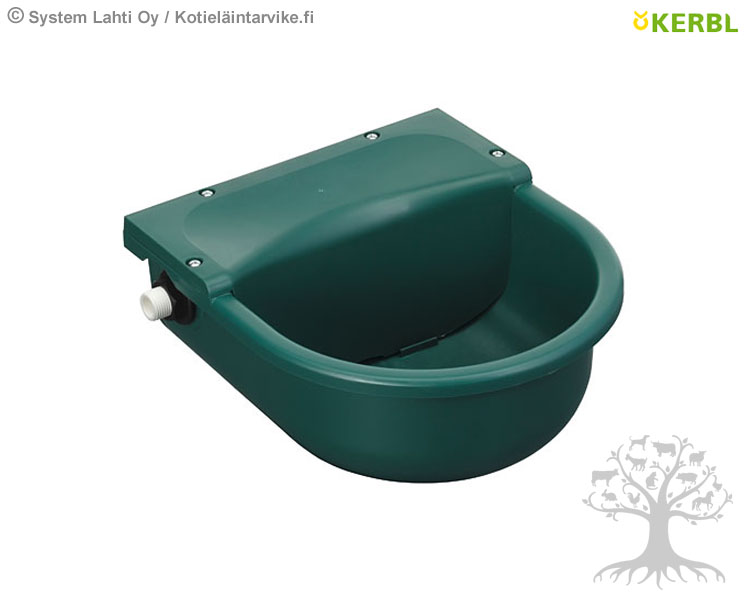 Kerbl Juomakuppi S522, uimurikuppi. Valmistettu kestävästä polypropeenista. Kuppiosan tilavuus 3 litraa. Putkiliitäntä 1/2" (vasen ja oikea). Tyhjennystulppa helpottaa kupin puhtaanapitoa. Uimurijuomakupissa on aina vettä, ja se sopii erityisesti eläimille, jotka eivät opi käyttämään putkiventtiiliä tai painolevyllisiä juomakuppeja. Sopii naudoille, hevosille ja lampaille. Mitat: 29 x 25,5 x 14,5 cm.