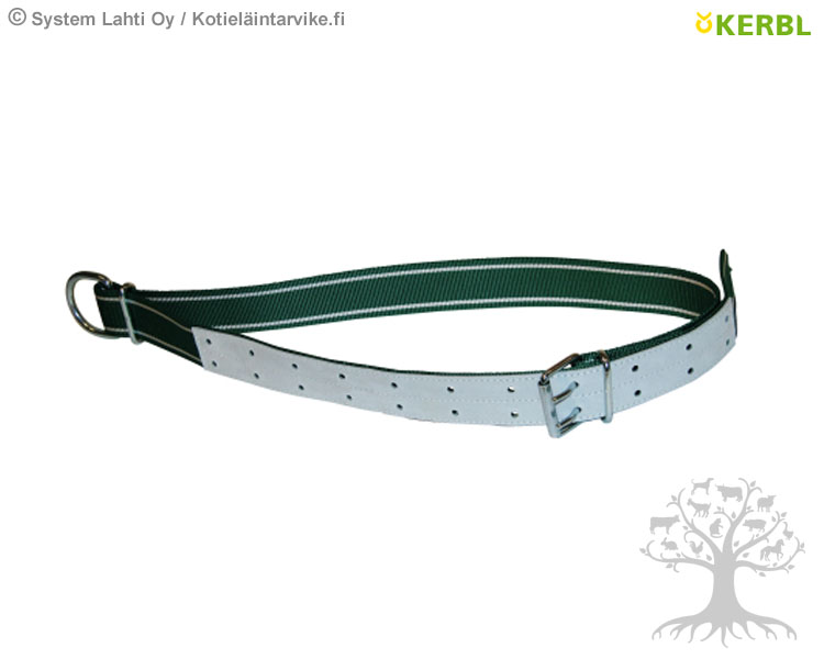 Kerbl Kaulapanta 150x5cm, Sonnit.. Säädettävä kaulapanta 150x5cm. Valmistettu nylonista, jota on vahvistettu nahalla. Tuplasolki parantaa kaulapannan vetolujuutta. Vihreä valkoisilla raidoilla. D-rengas kiinnitystä varten.