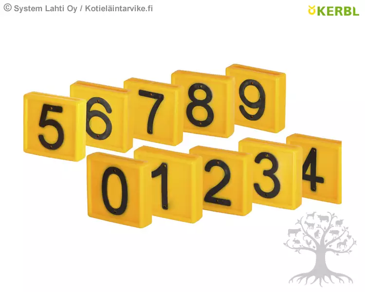 Kerbl Merkintäkaulapannan numerot 0-9. Numerot sopivat max. 40mm leveään naudan merkintäkaulapantaan. Numerointi yksipuolinen. Numerot pujotetaan kaulapantaa.
