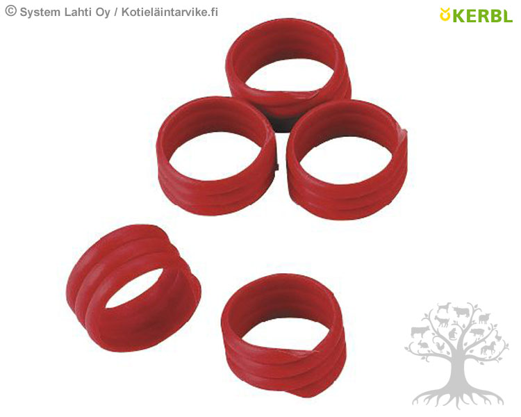 Kerbl Merkintänauha Ø16mm punainen, 20kpl. Merkintänauha Ø16mm, punainen. Spiraalinauha siipikarjan jalkaan, kolme kierrosta. Erittäin vahva. Pakkauksessa merkintänauhoja 20kpl.