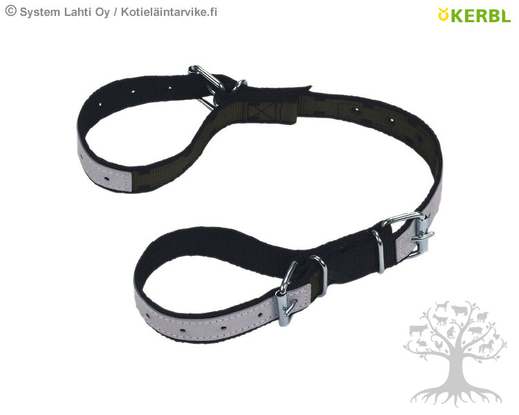 Kerbl Nautojen jalkaremmi Top Quality, säädettävä. Erittäin laadukkaat, vahvat ja kestävät jalkaremmit. Jalkalenkit ovat soljilla säädettävissä sopivan kokoisiksi. Tässä mallissa voi säätää jalkalenkkien lisäksi jalkojen välissä olevan välihihnan pituutta. Säätöväli 22-42cm. Jalkaremmit helpottavat naudan ylös nousemista esim. poikimisen jälkeen sekä ehkäisevät revähdysten ja muiden vammojen syntymistä. Valmistettu Saksassa. Kiinnitetään nilkkojen yläpuolelle.