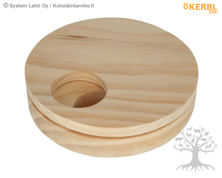 Kerbl Pet Jyrsijän Aktivointilelu Rotating Disc. Rotation Disc tarjoaa kaneille ja muille jyrsijöille mukavaa tekemistä ja aktiviteettia. Aktivointilelussa on 3 koloa, johon voi piilottaa jyrsijän lempi hedelmiä, vihanneksia tai muita herkkuja. Siinä on myös pyörivä kansi, jota lemmikki voi liikuttaa löytääkseen mukavan yllätyksen. Rotation Disc pysyy paikaan pohjassa olevan pinnoitteen ansiosta. Valmistettu puusta.
