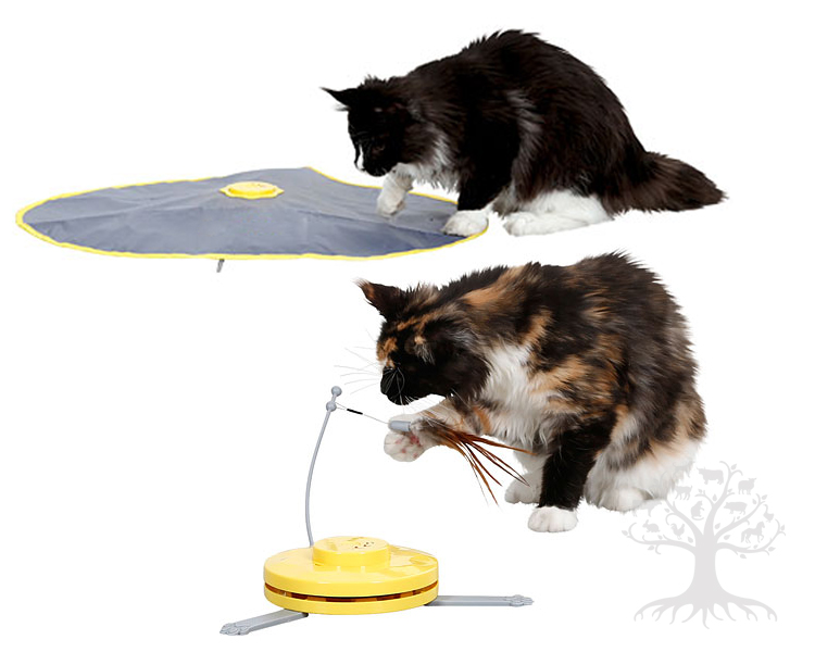 Kerbl Pet Kissan Aktivointilelu Catch A Feather 2in1. Huikea aktivointilelu kissoille! Catch A Feather lelussa on valittavissa kaksi eri leikkiä: pyörivä sulkaviuhka tai pyörivä tanko maton alla. Aktivointilelussa on tukeva jalallinen runko, jonka pohjassa taitettavat jalat. Jalkojen pohjassa kumiset liukuesteet, jolloin runko pysyy paikoillaan. Rungon kyljessä pidike, johon kiinnitetään tukeva, joustava muovitanko, jonka päässä roikkuu höyheniä. Rungon päällä yksi nappi, josta lelu laitetaan päälle ja pois päältä. Samalla käynnistysnapilla pystytään valitsemaan kolme eri pyörimistapaa: hidas, nopea ja satunnainen. Toisessa leikkivaihtoehdossa mukana tuleva kestävä ja rapiseva nailonmatto asetetaan rungon päälle. Tässä pelissä höyhenviuhka poistetaan rungosta ja tilalle asetetaan suoranmallinen tikku. Samalla tavalla valittavissa pyörimistapa: hidas, nopea ja satunnainen. Pelissä automaattinen poiskytkentätoiminto 15 minuutin kuluttua. Kissat rakastavat tätä lelua! Se myös edistää kissan leikkiviettiä sekä reaktiokykyä.