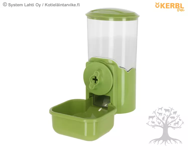 Kerbl Pet Ruokinta-Automaatti Feed Dispenser. Häkin ritilään kiinnitettävä ruokinta-automaatti Feed Dispenser takaa jatkuvan rehun saannin. Valmistettu korkealaatuisesta ja kestävästä muovista. Ruokinta-automaatti on helppo ja nopea täyttää irrotettavan kannen avulla. Läpinäkyvän pinnan ansiosta voit helposti seurata rehun määrää.