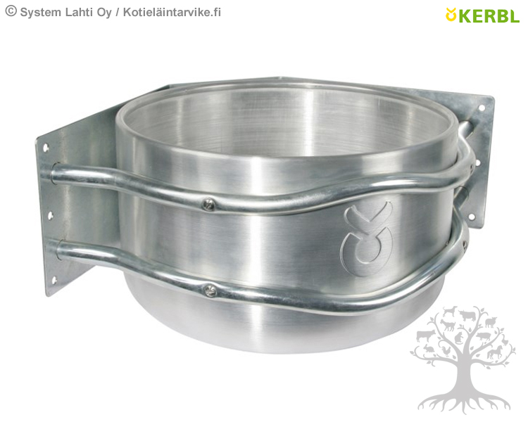 Kerbl Ruokintakaukalo Aluminium Corner 18L. Korkealaatuinen, pyöreä ruokintakaukalo, jossa kulmamallinen tausta-/kiinnityslevy (kiinnitetään nurkkaan).