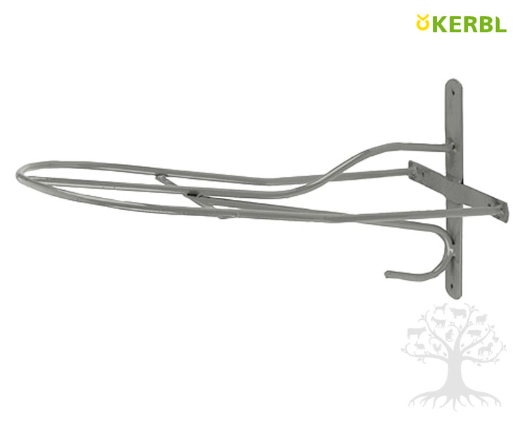 Kerbl Satulateline Grey. Seinään kiinnitettävä satulateline, jossa on myös koukku suitsille. Satulatelineen mitat (pituus x leveys) 54cm x 23 cm. Valmistettu tukevasta ja kestävästä metallista, pulverimaalattu.