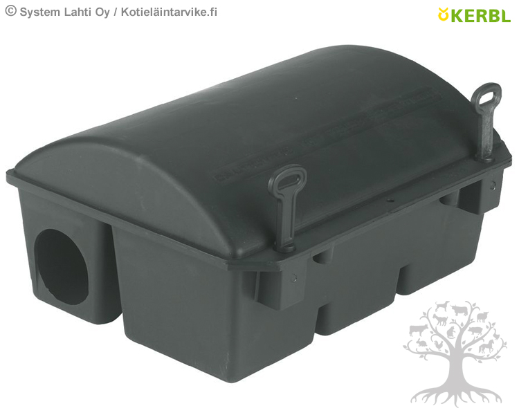 Kerbl Syöttilaatikko Rotille BlocBox Plastic. Valmistettu kestävästä muovista. Mitat: 32.5 x 25.0 x 16.0 cm. Lukittava syöttilaatikko pitää syötit turvassa lapsilta ja lemmikeiltä. Jyrsijät syövät mieluiten hämärässä ja suojaisassa paikassa. Syöttipalat, viljasyötit ja tahnasyötit tulee aina sijoittaa syöttilaatikkoon.