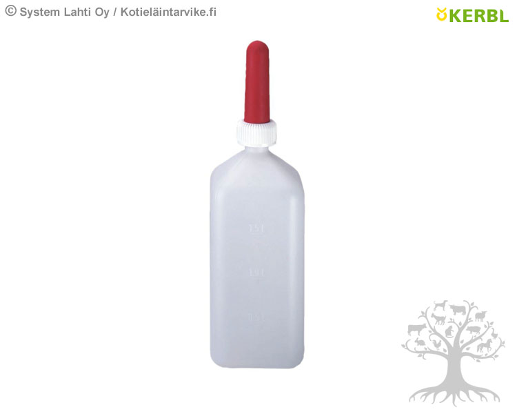 Kerbl Tuttipullo vasikalle 2L. Muovinen tuttipullo, jota voidaan käyttää vasikan juottoon, tai lääkitsemiseen. Tuttipullossa on mitta-asteikko. Sisältää pullon ja tuttiosan. Kulmikas muoto. Tilavuus 2 litraa. Pohja 11cm x 11cm, korkeus 26.5cm (ilman tuttia).