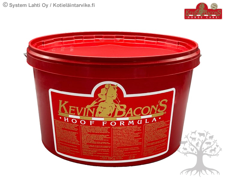 Kevin Bacon's Hoof Formula 5kg. Kevin Bacon's Hoof Formula on korkealaatuinen täydennysrehu tukemaan mm. kavioiden kasvua sekä sarveisaineksen laatua. Maukkaat pelletit sisältävät runsaasti kasviproteiineja, välttämättömiä aminohappoja, vitamiineja sekä kivennäis- ja hivenaineita. Lisäksi tuote sisältää probiootteja ja metyylisulfonyylimetaania (MSM). Valmiste tukee myös lihasten kehitystä sekä karvan ja harjan laatua.