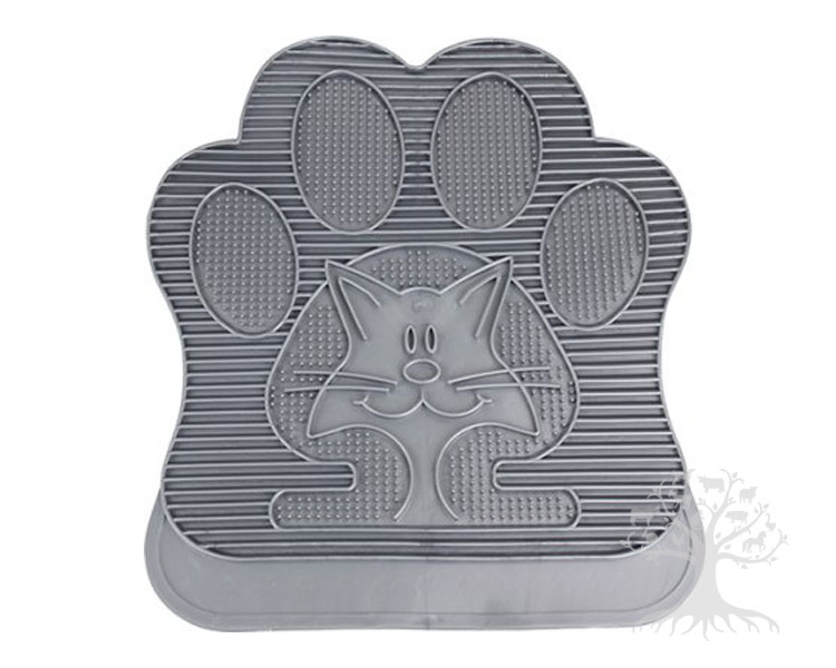 Kissanhiekkalaatikon Muotoiltu Edusmatto Cat Grey. Laadukas muovinen ja tassunmalliseksi muotoiltu edusmatto kissanhiekkalaatikon kulkuaukon edustalle. Muotoiltu ja kohopintainen kissanvessan edusmatto vähentää kissanhiekan kulkeutumista kissan mukana. Helppo puhdistaa. Mitat: noin 39x39cm. Väri: vaaleanharmaa.