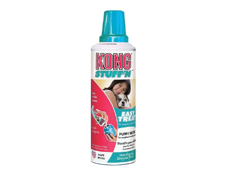 Kong Easy Treat Täytemakutahna Puppy. Vastustamattoman herkullinen makutahna aktivointilelujen täytteeksi koiranpennuille. Täytemakutahna on maksanmakuinen. Perinteisen Kong-täytemakutahnan pentuversio on valmistettu ainutlaatuisella reseptillä palvelemaan koiranpentujen tarpeita. Pakkauksessa on kätevä suutin, jolla makutahnaa saa annosteltua aktivointilelun sisälle. Valmistettu USA:ssa.