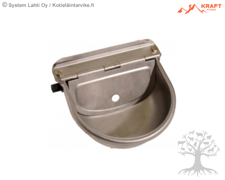 Kraft Juomakuppi RST, uimurikuppi . Valmistettu ruostumattomasta teräksestä. Putkiliitäntä 1/2" (Vasen/oikea). Uimurijuomakupissa on aina vettä, ja se sopii erityisesti eläimille, jotka eivät opi käyttämään putkiventtiiliä tai painolevyllisiä juomakuppeja. Vedenvirtaus 5 litraa/min (3bar). Mitat: 28x26x13mm. Tilavuus 3.5L. Uimurikotelo on helppo aukaista ilman työkaluja. Sopii Lampaille, naudoille ja hevosille.