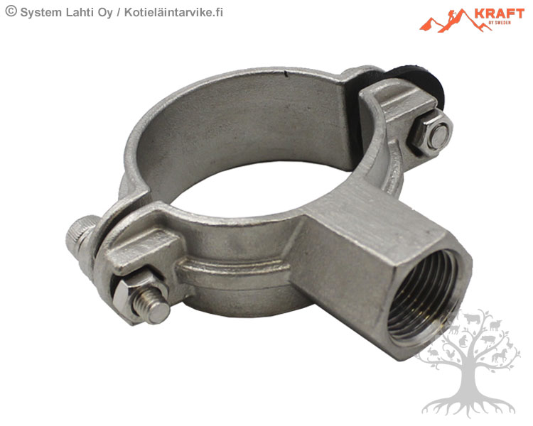 Kraft Satulaliitin 1 ½" putkelle. Satulaliitin 1 ½" putkelle ja lähtö putkelle tai nipalle on ½" sisäkierre. Ruostumatonta terästä.