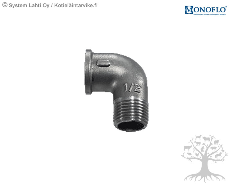 Monoflo Kulma 90° Rst, 1/2"sk - 1/2"uk. Kulma 1/2" Sisäkierre - 1/2" ulkokierre. Ruostumatonta terästä.