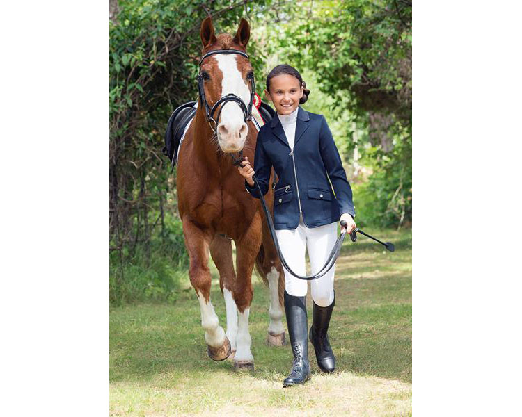 Mountain Horse Kisatakki Laurel Junior Navy. Erittäin kaunis ja tyylikäs kisatakki lapsille. Kisatakissa paljon hienoja yksityiskohtia. Takin erittäin joustava kangas, joka tekee takista erittäin mukavan ja istuvan, kuin toinen iho. Muodikas nahkakaulus, "timanttinapit", kimaltelevat leveät YKK:n hopeiset vetoketjut ja kauniit takin leikkaukset tekee takista upean ja eleganssin. Vasemmassa hihassa Mountain Horse-merkki.