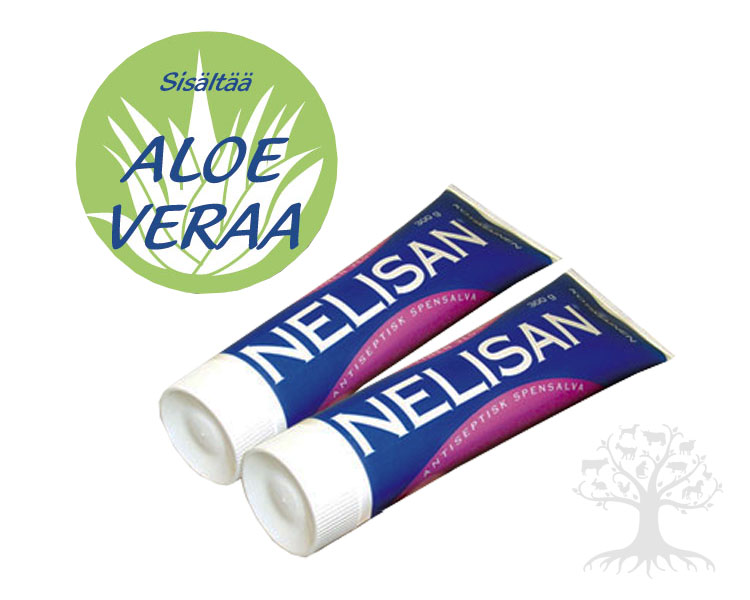 Nelisan Vedin-, Haava- ja Käsivoide Aloe Vera 300g. Antiseptinen, Aloe Veraa sisältävä kotimainen vedin-, haava- ja käsivoide. Vedin- ja yleisvoide Nelisan pehmentää ihoa ja imeytyy nopeasti. Nelisanin päivittäinen käyttö pitää vedinten ihon pehmeänä ja joustavana. Voiteen desinfiointikyky vähentää tehokkaasti bakteerien leviämisriskiä. Hygieeninen käyttää. Valmistettu Suomessa.
