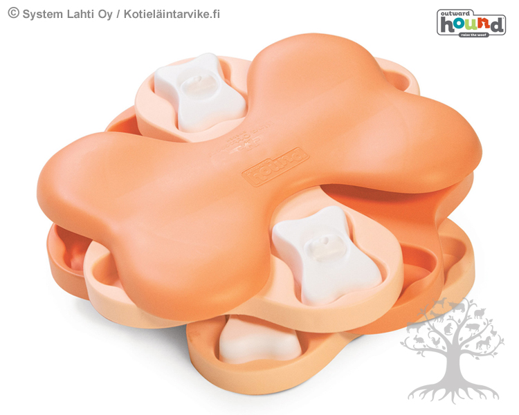Outward Hound Aktivointilelu Puppy Tornado. Nina Ottossonin suunnittelema Puppy Tornado on interaktiivinen koirapalapeli, joka pitää koirasi innostuneena ja tyytyväisenä. Tässä keskivaikeassa aktivointilelussa on kolme tasoa, joissa on 12 lokeroa koiran herkkuja tai nappuloita varten. Mukana kolme luun muotoista kantta, joita voidaan käyttää lisäämään vaikeutta peliin. Tämä viihdyttävä pulmapeli rohkaisee koiraasi pyörittämään tasoa paljastaakseen herkulliset palkinnot, sekä tarjoaa hauskan fyysisen ja psyykkisen haasteen.