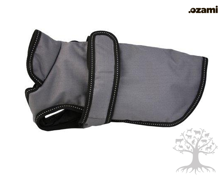 Ozami Koiran Toppamantteli Winter Gray. Ryhdikäs, helposti puettava lämmin ja hengittävä toppamantteli koiralle. Ozami toppamantteli pysyy hyvin paikoillaan jalkalenkkien ja rintavyön avulla. Manttelin mukavuutta ja koiran liikkumisvapautta on lisätty joustavalla kaula-aukolla. Mantteli mukautuu hyvin koiran liikkeeseen. Kanttinauhoissa heijastinnauha. Musta puuvilla vuori, veden- ja tuulenpitävä polyester päällikangas sekä taluttimen läpivientiaukko. Konepestävä.