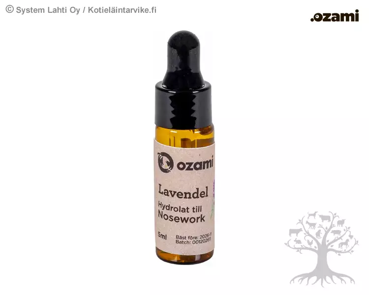 Ozami Nosework Hydrolaatti Laventeli 5ml. Ozami Nosework Hydrolaatti on nosework-harjoitteluun tarkoitettu hajuste. Mieto hydrolaatti sopii sekä aloittelijoille että kokeneemmille. Pieni lasipullo pipetillä mahdollistaa tarkan annostelun. Tuotetta käytetään yhdessä hajusäiliöiden kanssa harjoittelussa.