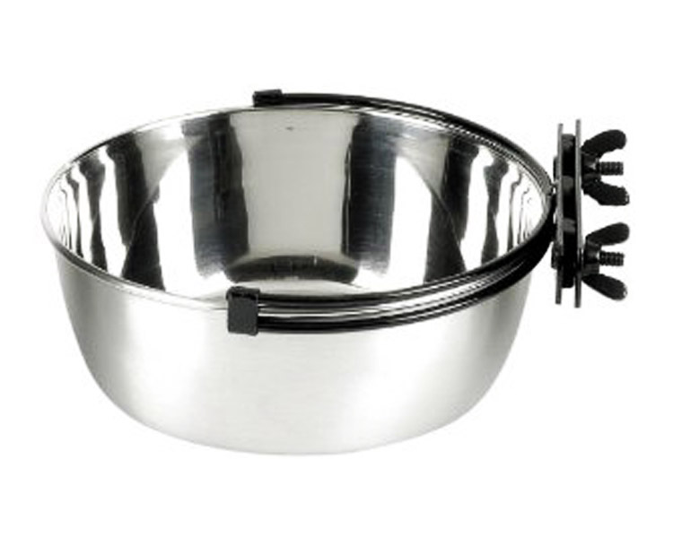 Ozami Teräskuppi Pidikkeellä 1900ml/ 20cm. Käytännöllinen teräksinen ruoka- ja juomakuppi koirille. Kupissa teline, joka on helppo kiinnittää esimerkiksi koiratarhan verkkoon. Tarhassa korkeammalle asetettu kuppi on turvassa koirien merkitsemisiltä. Teräskuppi on mahdollista irroittaa telineestä pesun tai ruoan annostelun ajaksi.