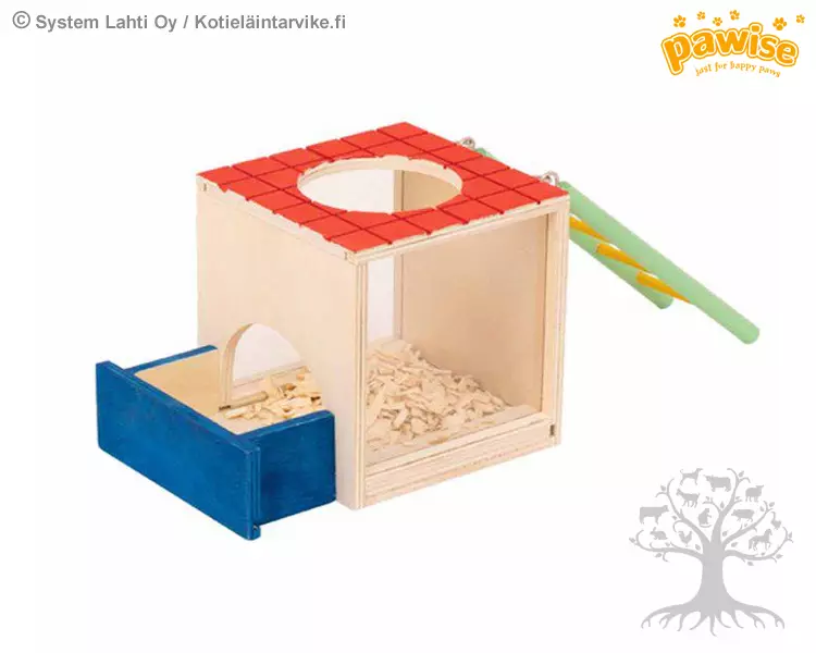 Pawise Puutalo Burrow Box. Burrow Box on täydellinen pienille eläimille kaivamiseen ja tutkimiseen. Puutalo on suunniteltu erityisesti antamaan pienille eläimille mahdollisuuden kaivaa ja tutkia, mikä stimuloi niiden luonnollista käyttäytymistä ja pitää ne aktiivisina. Kestävästä materiaalista valmistettu pieni puutalo takaa pitkäaikaisen käytön ja helpon puhdistuksen. Puutalossa käytetyt värit ovat turvallisia lemmikille.
