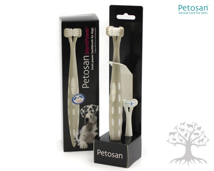 Petosan Sähköhammasharja SilentPower. Erittäin laadukas paristokäyttöinen ja ergonomisesti muotoiltu sähköhammasharja. Tehokas ja helppokäyttöinen sähköhammasharja (20 000 harjasliikettä minuutissa) poistaa plakin erittäin tehokkaasti. Hellävarainen ja hiljainen käytössä - koirat hyväksyvät sen helposti. Kaksipuoleiset harjakset harjaavat hampaan molemmilta puolilta aina ienrajaan asti. Lemmikin hampaiden sisä- ja ulkopintojen puhtaanapito on yhtä tärkeää. Mukana tulee kaksi harjaspäätä; yksi isoille koirille ja toinen pienille & keskikokoisille koirille. Vaihdettava paristo ja harjaspää. Harjaspäätä saatavilla kahta eri kokoa.