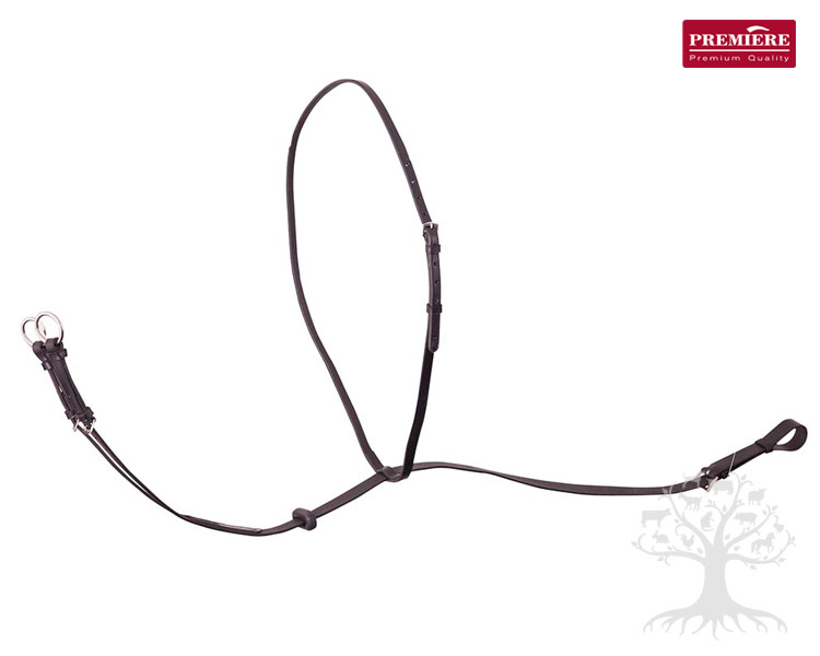 Premiere Martingaali Black. Nahkainen martingaali kumisella stopparilla. Martingaalin mahavyötä, kaula- ja ohjahihnoja voidaan säätää. Martingaalissa on terässoljet.