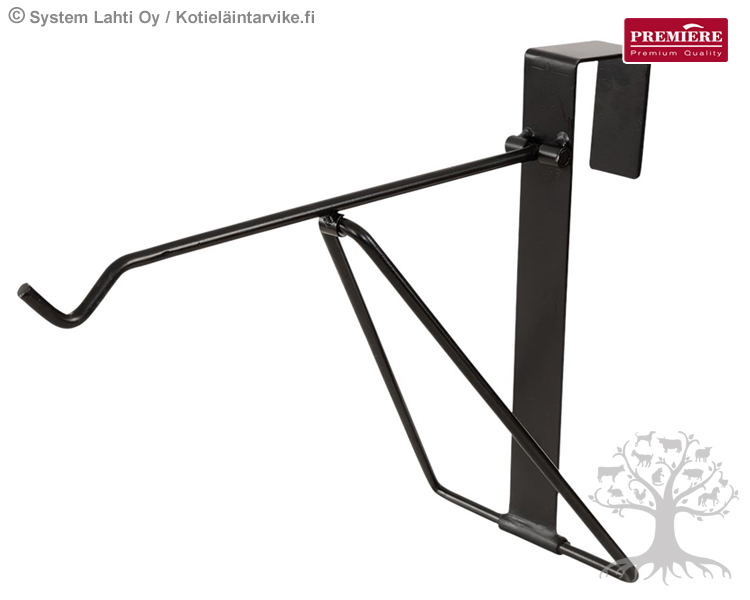 Premiere Ripustusteline Ankkurikoukulle. Laadukas nopeasti seinään kiinnitettävä erittäin monikäyttöinen ripustusteline esim. ankkurikoukulle. Ripustusteline ankkurikoukulla on erityisen kätevä esimerkiksi suitsien ja muiden varusteiden säilytykseen. Ripustusteline valmistettu mustaksi maalatusta metallista. Ripustusteline on helppo ja nopea "laskea" alas, silloin kun telinettä ei käytetä.