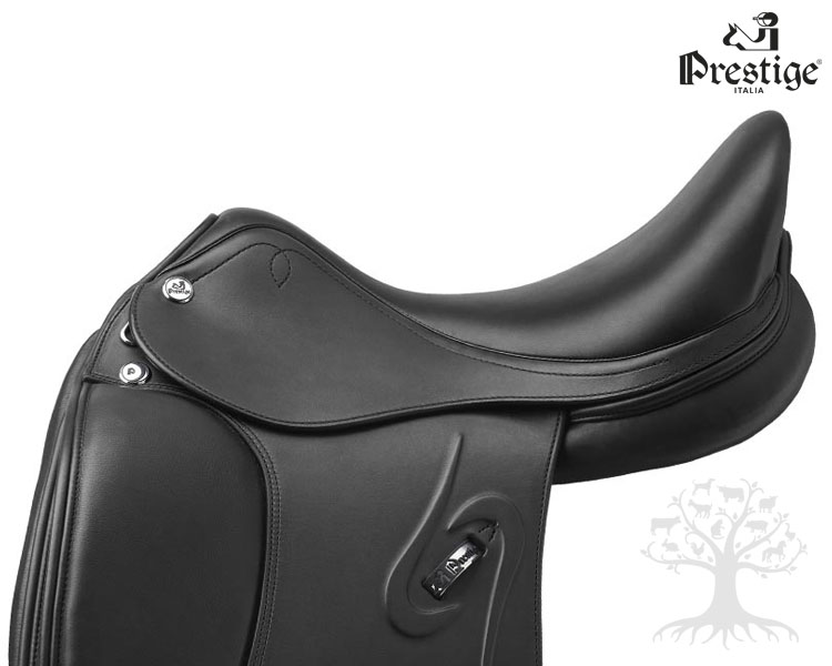 Satula on vuorattu kokonaan korkealaatuisesta, kestävästä, sileästä, öljytystä ja notkeasta 3.3mm paksusta LUX-nahasta, jossa on ainutlaatuisen hyvä pito. Siivissä on tyylikäs kohokuviointi ja Prestige-logo. Satulan anatomisesti muotoillut ja leveämmät villatopatut (W) paneelit jakavat ratsastajan painoa tasaisesti ja laajemmalle alueelle sekä varmistavat hevoselle erinomaisen vapaan liikkuvuuden, niin lavoista, etuosasta kuin keskeltä. Takavastinhihnat liikkuvat V-mallisen kiinnityssysteemin ansiosta, joten satula istuu hyvin ja pysyy "stabiilisti" paikoillaan.