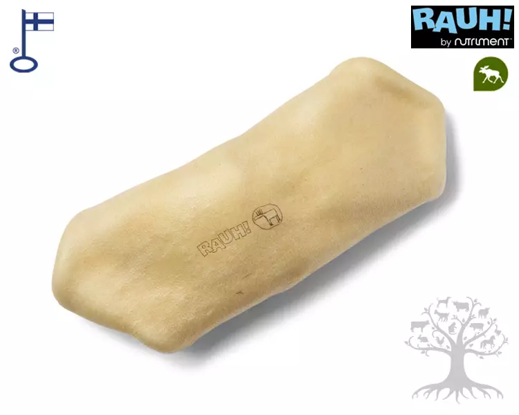 RAUH! Moose S. Suomalaisesta hirvennahasta valmistettu koiran puruluu. Moose S on ensimmäinen RAUH! -hirvipuruluu ja edelleen erittäin suosittu koirien keskuudessa. Moose S on suunnattu erityisesti pienille ja keskisuurille koirille. Hirvennahasta valmistettu puruluu on todellinen luonnontuote, eikä siinä ole allergisoivia ainesosia hirven luonnollisen ruokavalion vuoksi. Hirvipuruluut ovat hyvä vaihtoehto allergisille koirille. RAUH! -hirvipuruluihin käytetään vain nahan laadukkain osa, joka sisältää myös hirven pintanahan. Pintanahka antaa puruluulle sen ainutlaatuisen ulkonäön ja erinomaisen kestävyyden. Hirvennahkaluut ovat erittäin kestäviä eivätkä pehmene koiran pureskelun seurauksena.