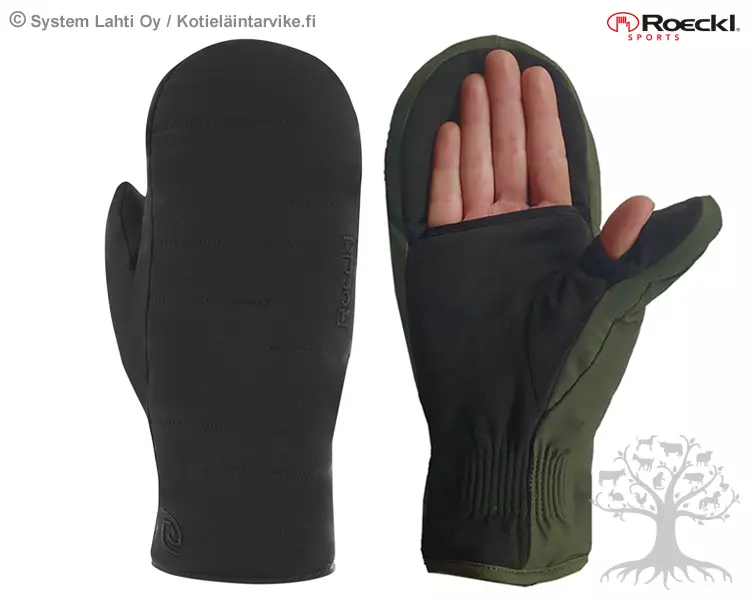 Roeckl Talvihanskat Nagoya. Roecklin ECO -malliston erittäin laadukkaat, lämpimät ja kestävät talvirukkaset on valmistettu ekologisista materiaaleista. Hanskoissa on kätevä Slip-out-muotoilu, jonka ansiosta saat avattua rukkasosan sormenpäistä ja peukalosta esimerkiksi kännykkää, hevosen riimunnarua ja varusteita tai koiran talutushihnaa käytettäessä.